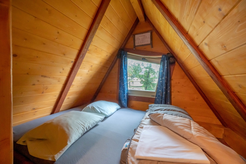 - 1 chambre avec 3 couchages (1 lit simple en hauteur pour enfant de moins de 12 ans et 2 lits simples 80*190 cm)
