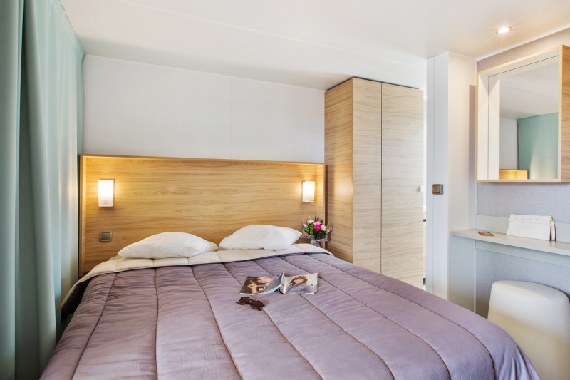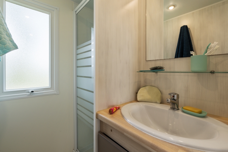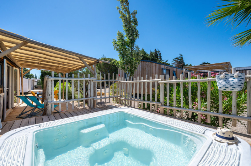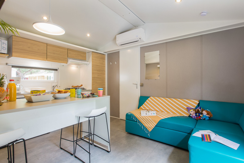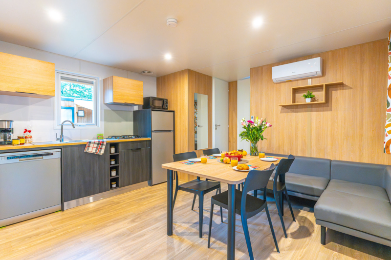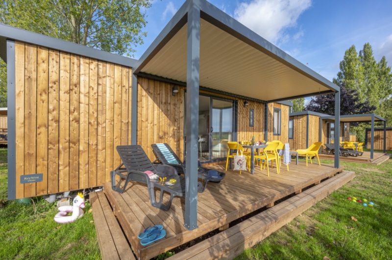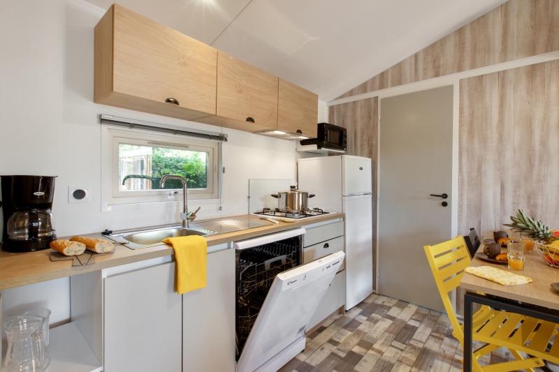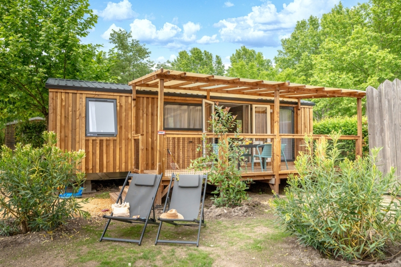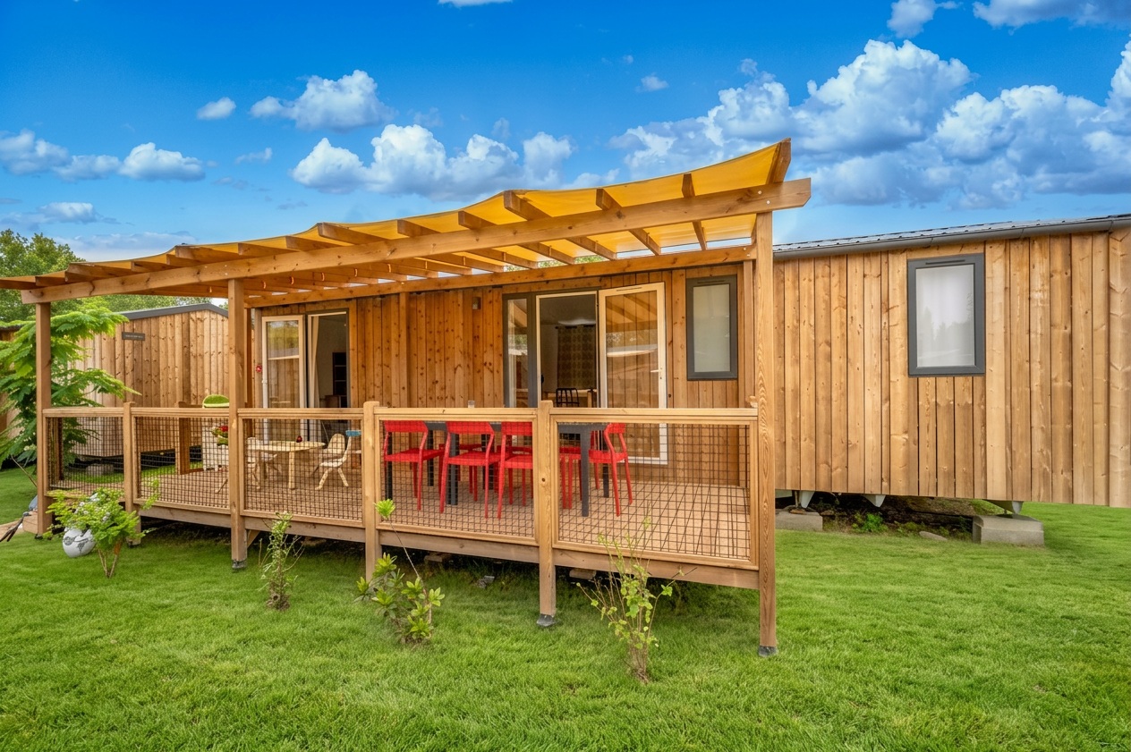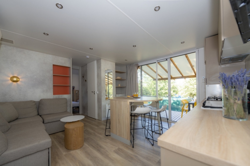 Nous lui avons donc construit un hébergement à son image. Un grand mobil home, de l’espace, de la clarté et le top des prestations pour un farniente de grande qualité.