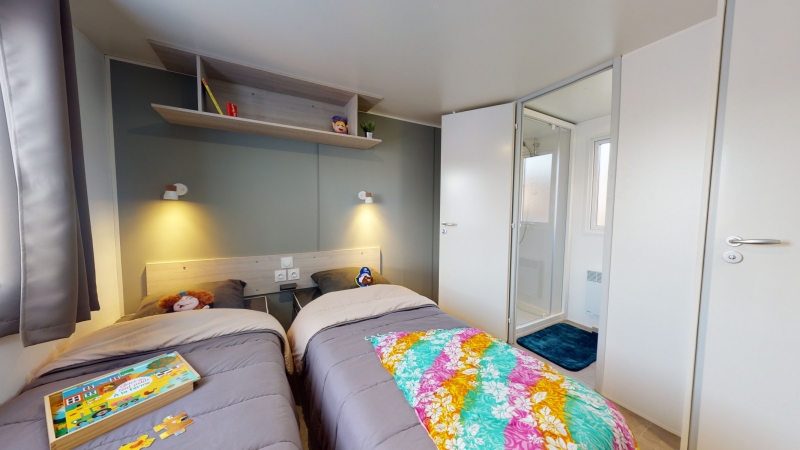 - 1 chambre avec 2 lits simples (80x190cm) et sa salle de douche et wc privatifs