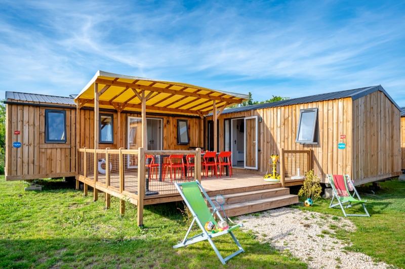 C'est un grand emplacement de 170 m² sur lequel 2 mobil-homes partagent une grande terrasse !