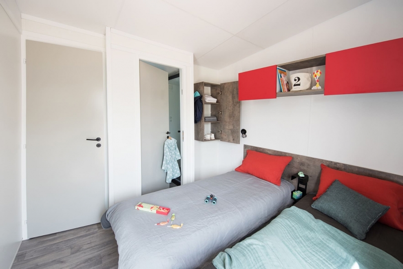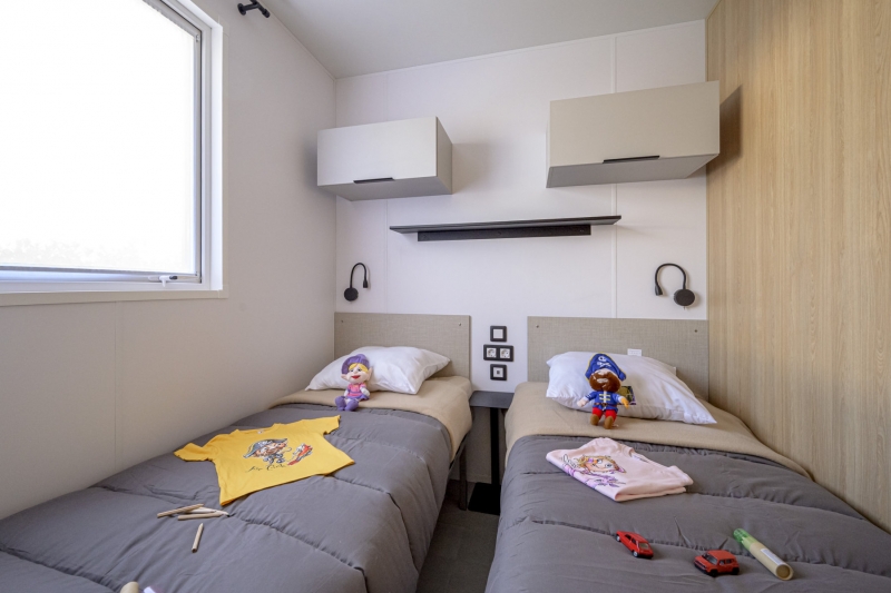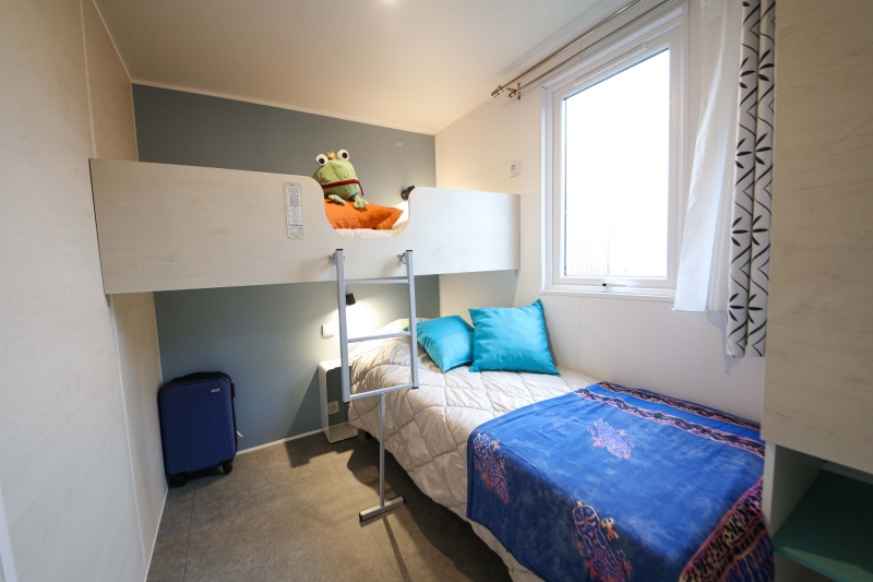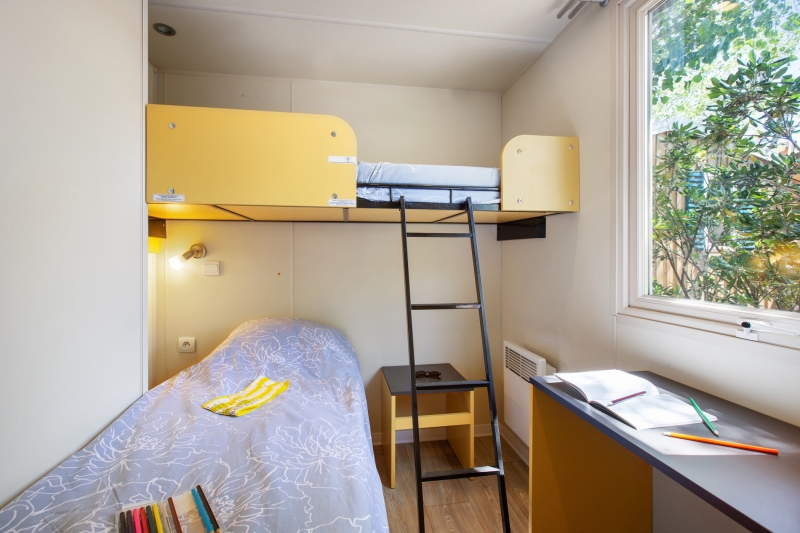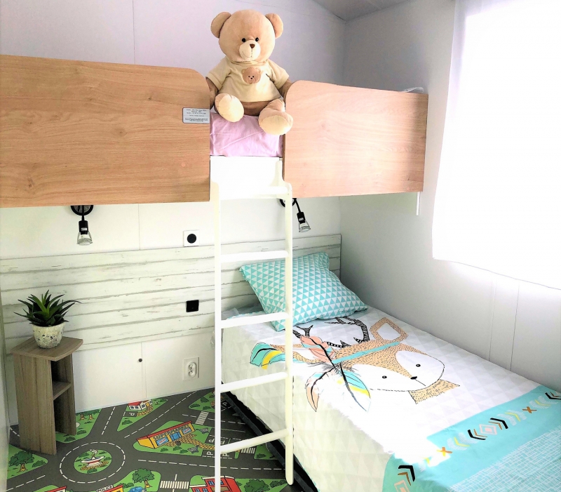 - 1 chambre avec 3 couchages (1 lit simple en hauteur pour enfant de moins de 12 ans et 2 lits simples 80*190 cm)