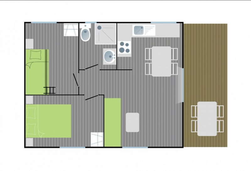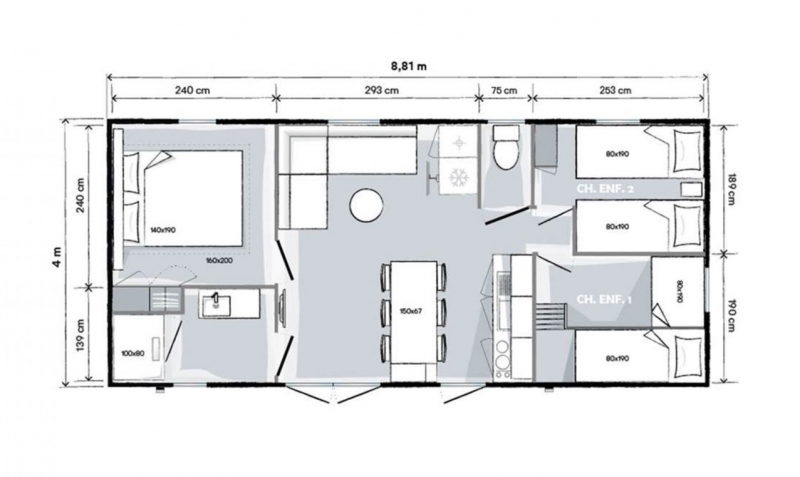 - 1 chambre : 3 lits simples dont 1 lit superposé et 1 lit gigogne