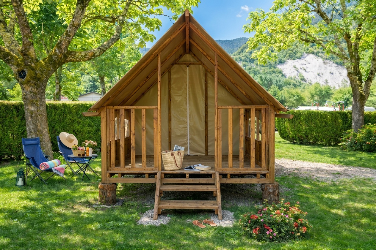 C'est un grand emplacement sur lequel on trouve 1 mobil-home pour 6 personnes avec 2 salles de bain et 1 tente pour 2 personnes !