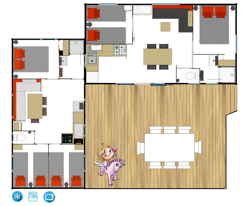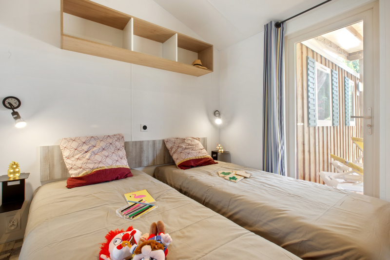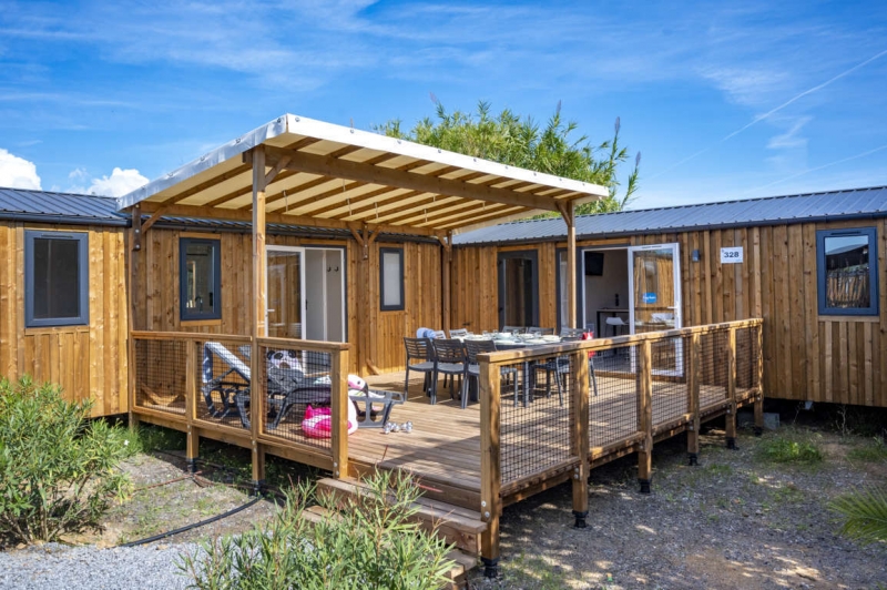 C'est un grand emplacement de 170 m² sur lequel 2 mobil-homes partagent une grande terrasse !