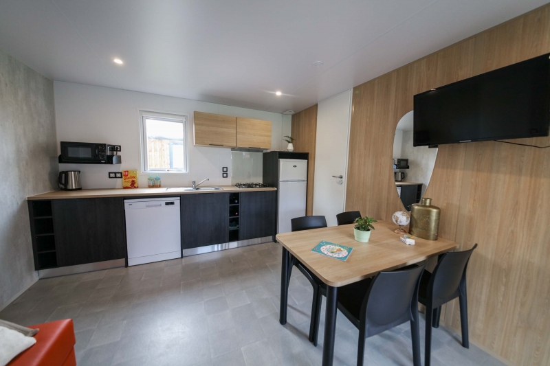 Un grand mobil-home avec 2 salles de bain et un WC privé ! C'est le concept offrant confort, tranquillité et espace de vie !