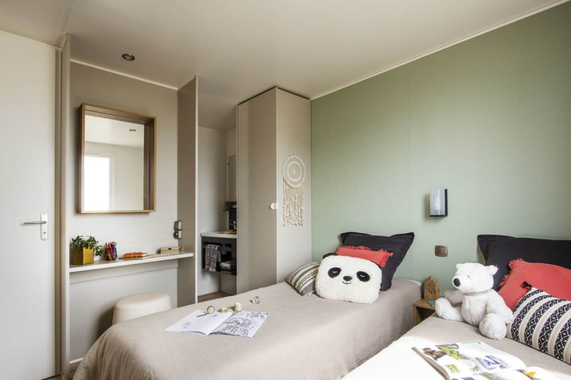 Nous lui avons donc construit un hébergement à son image. Un grand mobil home, de l’espace, de la clarté et le top des prestations pour un farniente de grande qualité.