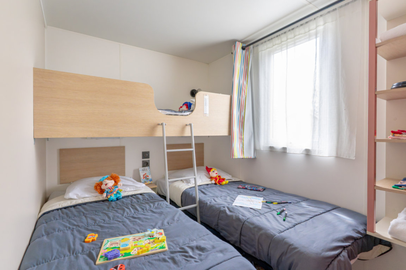- 1 chambre avec 3 couchages (1 lit simple en hauteur pour enfant de moins de 12 ans et 2 lits simples 80*190 cm)