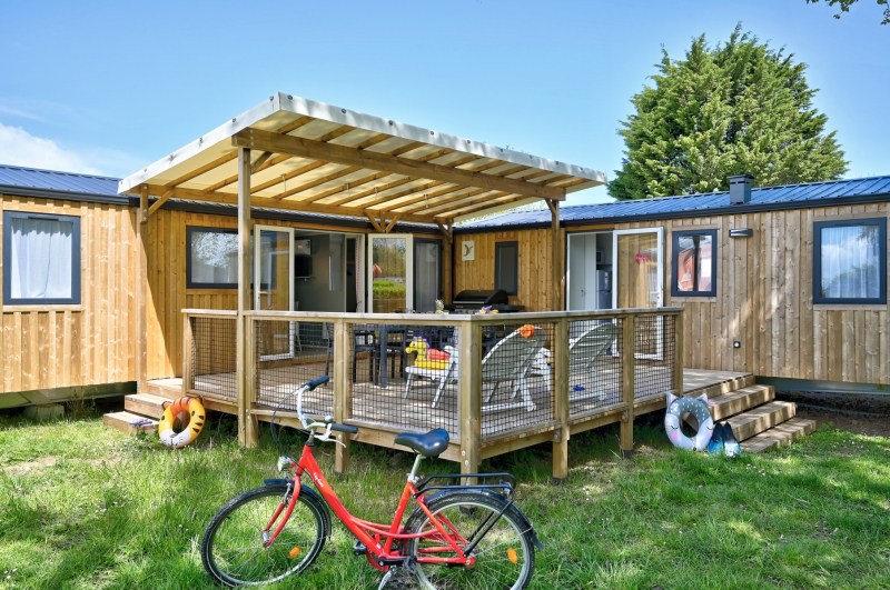 C'est un grand emplacement de 170 m² sur lequel 2 mobil-homes partagent une grande terrasse !
