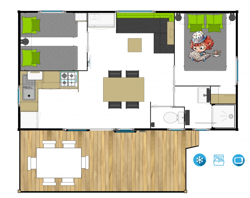 - Séjour avec banquette convertible (2 couchages)