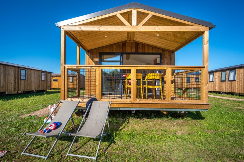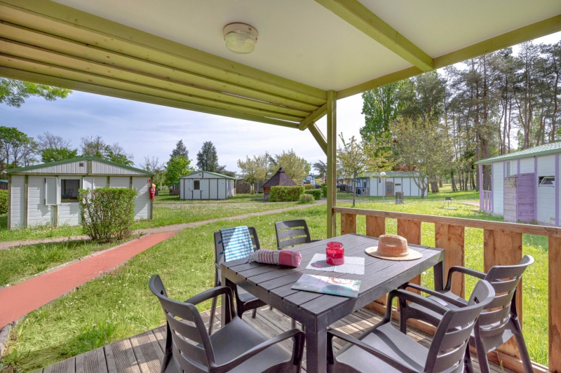 C'est un grand emplacement de 170 m² sur lequel 2 mobil-homes partagent une grande terrasse !