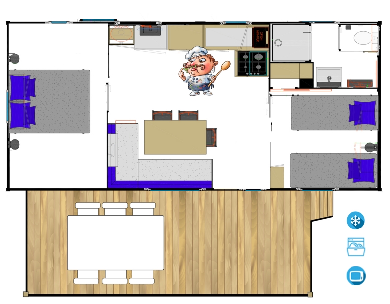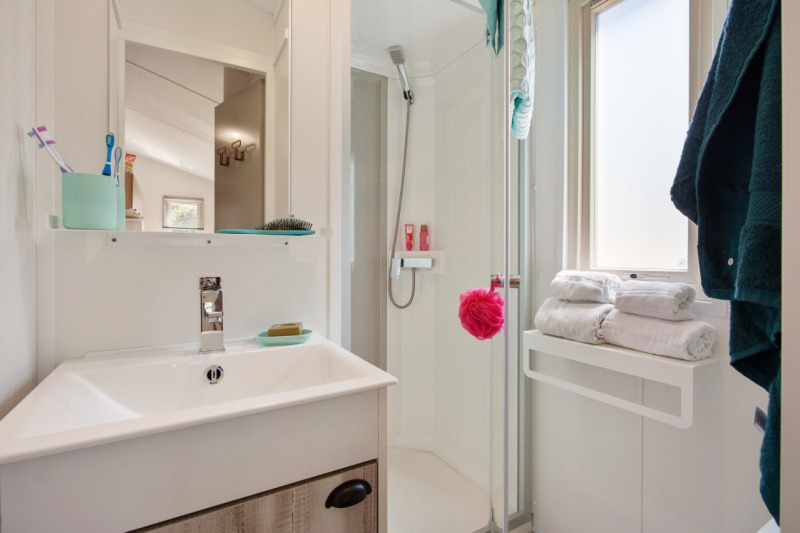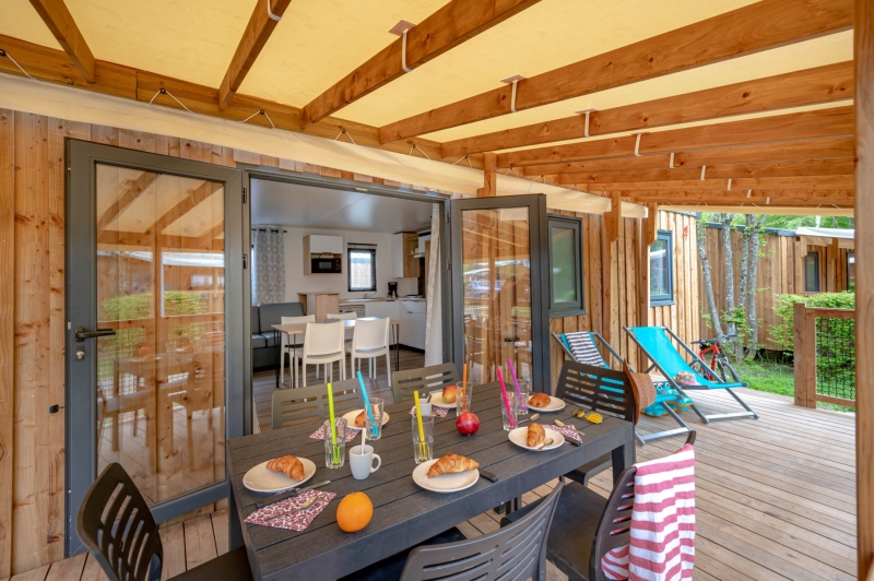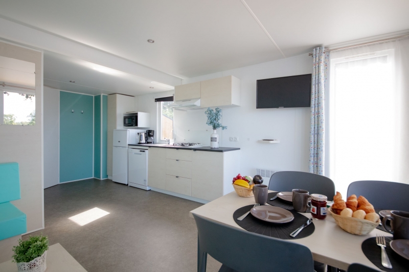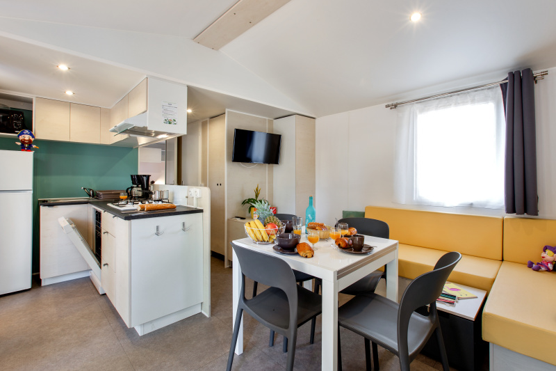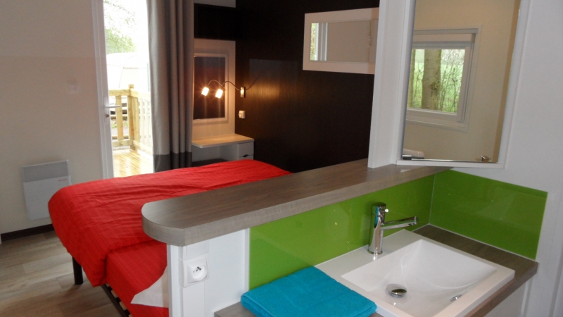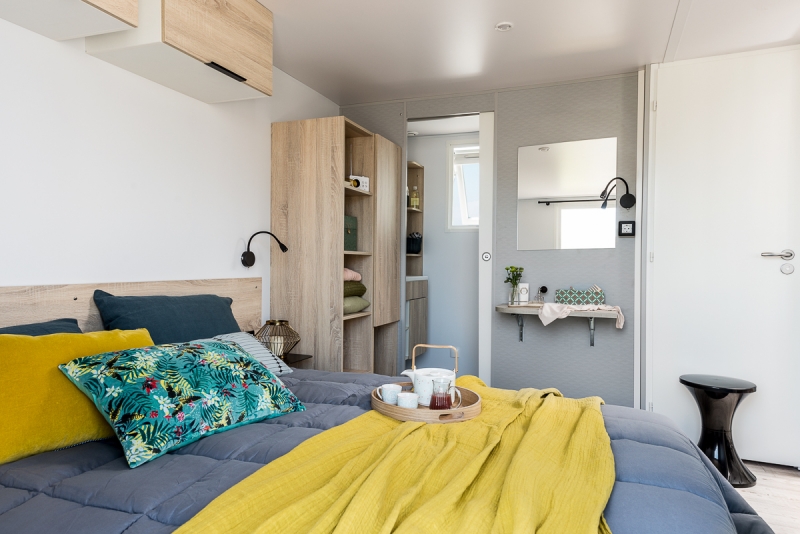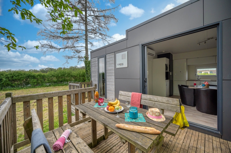 Nous lui avons donc construit un hébergement à son image. Un grand mobil home, de l’espace, de la clarté et le top des prestations pour un farniente de grande qualité.