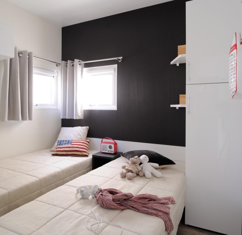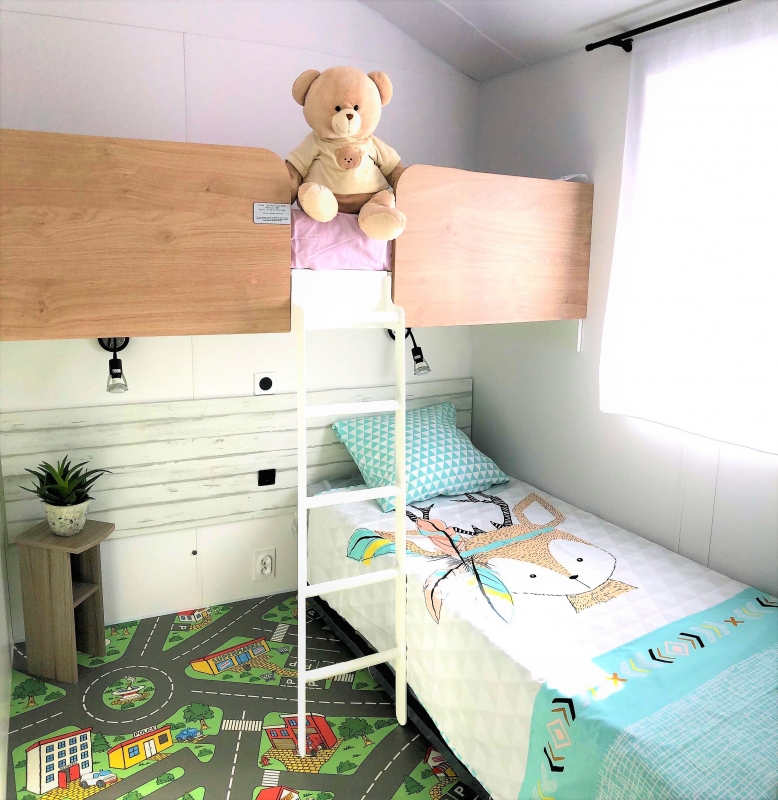 - 1 chambre avec 3 couchages (1 lit simple en hauteur pour enfant de moins de 12 ans et 2 lits simples 80*190 cm)