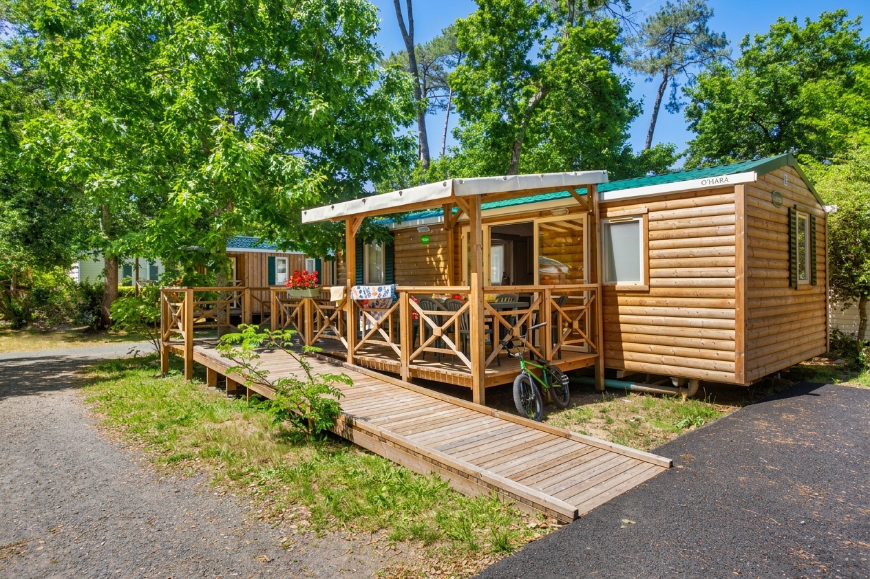 Mobil Home conçu pour les personnes présentant une déficience physique. Il est labellisé "Accessibilité handicapés".
