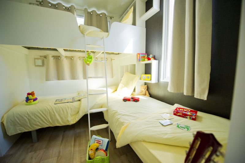 1 chambre avec 2 lits superposés (moins large : 70cm) et 1 lit simple (plus court : 180cm) réservés aux enfants de moins de 12 ans.