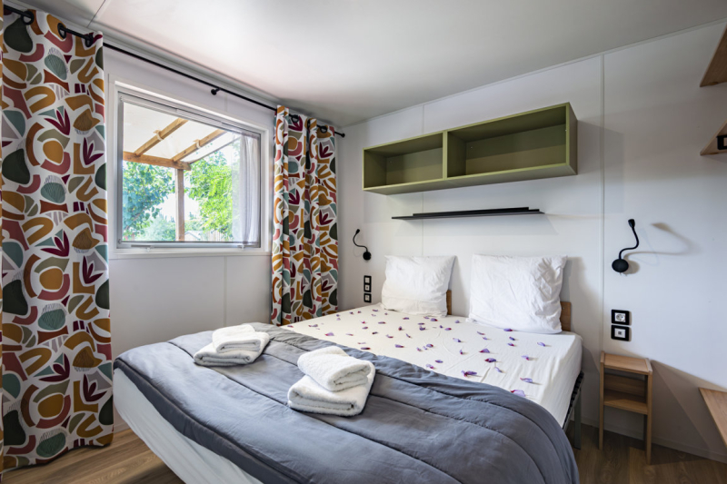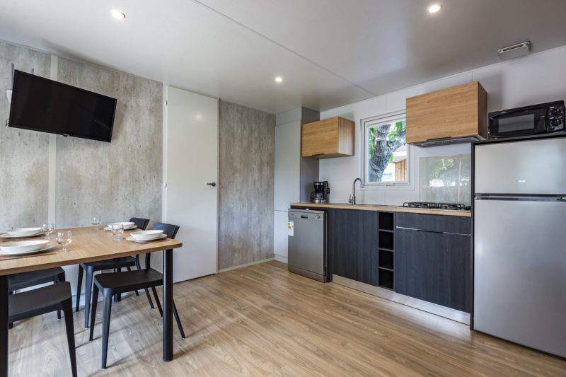 Nous lui avons donc construit un hébergement à son image. Un grand mobil home, de l’espace, de la clarté et le top des prestations pour un farniente de grande qualité.