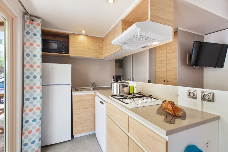 Nous lui avons donc construit un hébergement à son image. Un grand mobil home, de l’espace, de la clarté et le top des prestations pour un farniente de grande qualité.