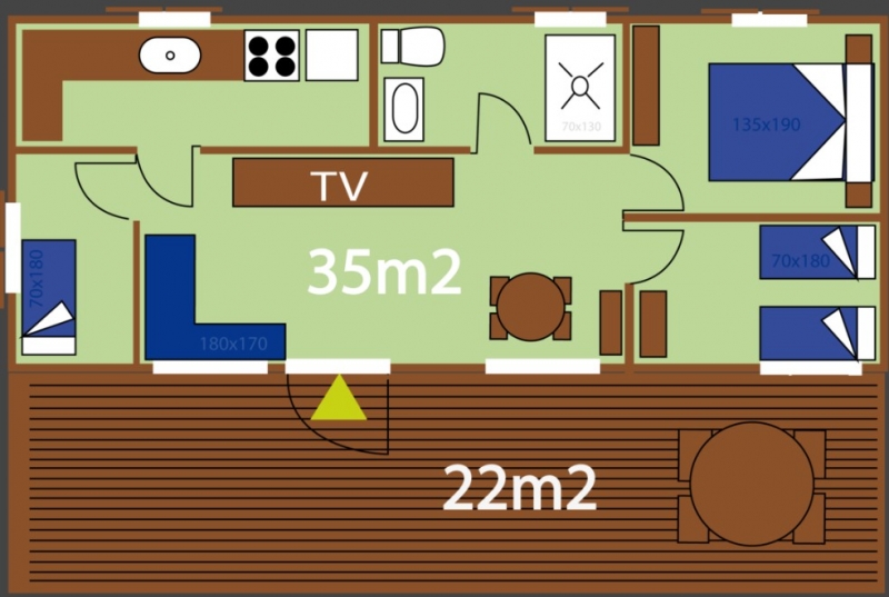 - 2 chambres: 1 chambre avec deux lits simples et 1 chambre avec un lit simple