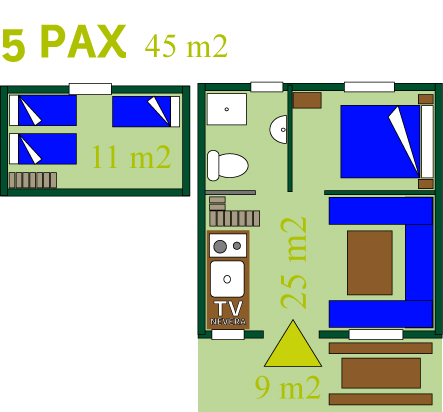 - 1 Chambre avec 3 lits simples
