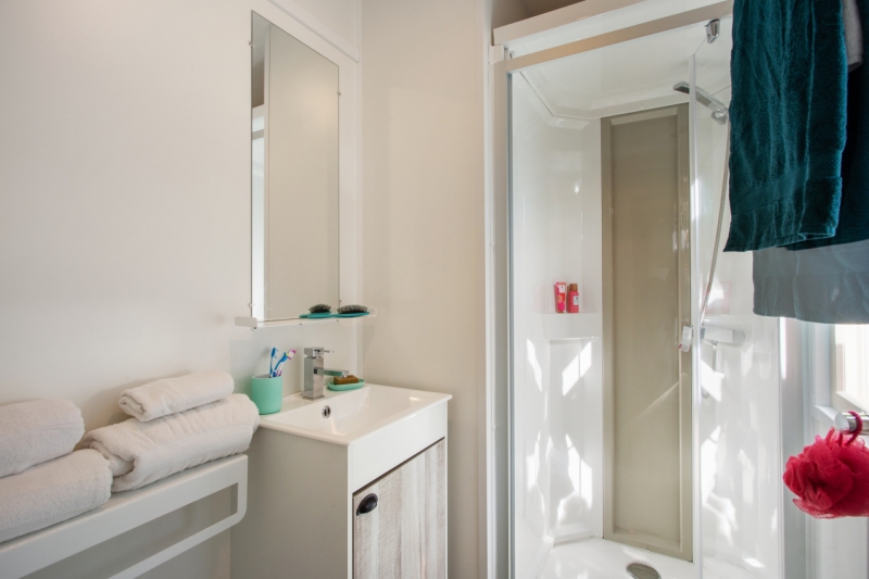 C'est un grand emplacement de 170 m² sur lequel 2 mobil-homes partagent une grande terrasse !