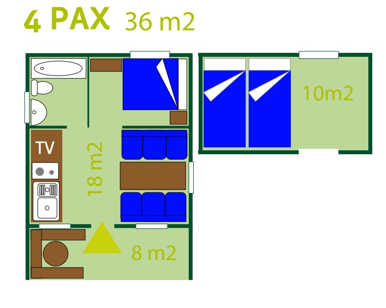 - 1 mezzanine avec 2 lits simples