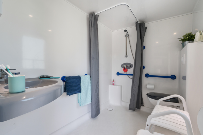 Mobil Home conçu pour les personnes présentant une déficience physique. Il est labellisé "Accessibilité handicapés".