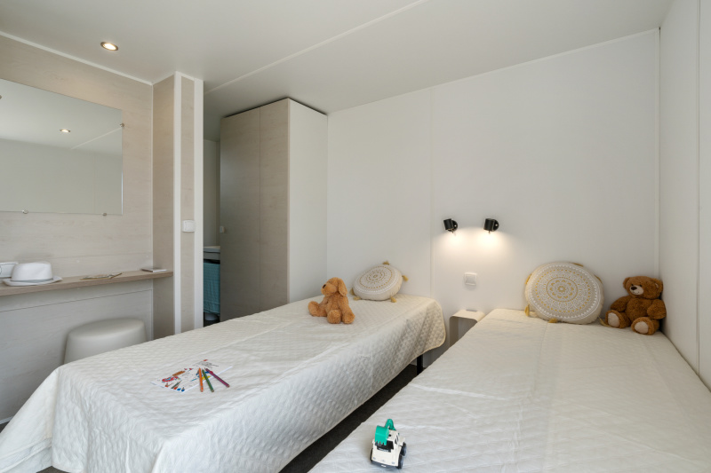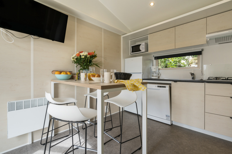 Nous lui avons donc construit un hébergement à son image. Un grand mobil home, de l’espace, de la clarté et le top des prestations pour un farniente de grande qualité.