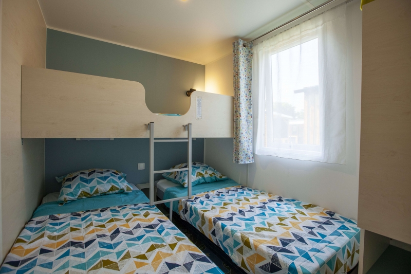 - 1 chambre avec 3 couchages (1 lit simple en hauteur pour enfant de moins de 12 ans et 2 lits simples 80*190 cm)