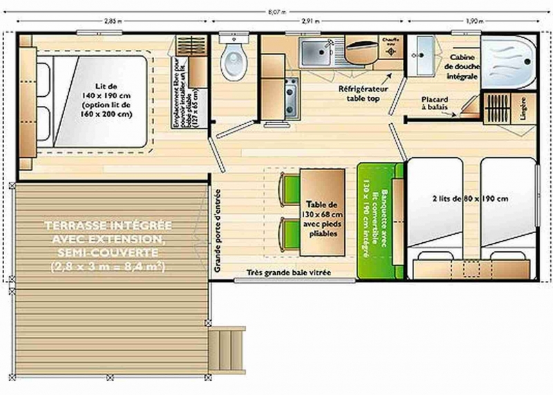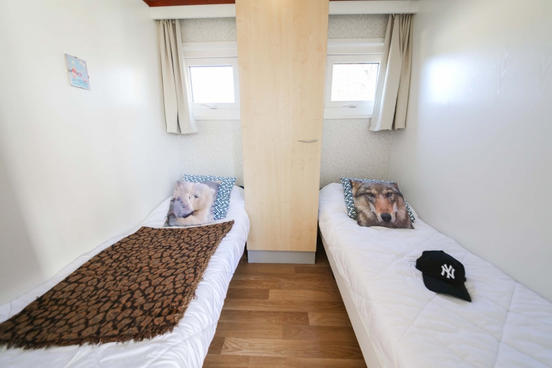 - 2 Chambres: 1 chambre avec 1 lit double (160 x 200cm) et 1 chambre avec 2 lits simples (80 x 190cm)