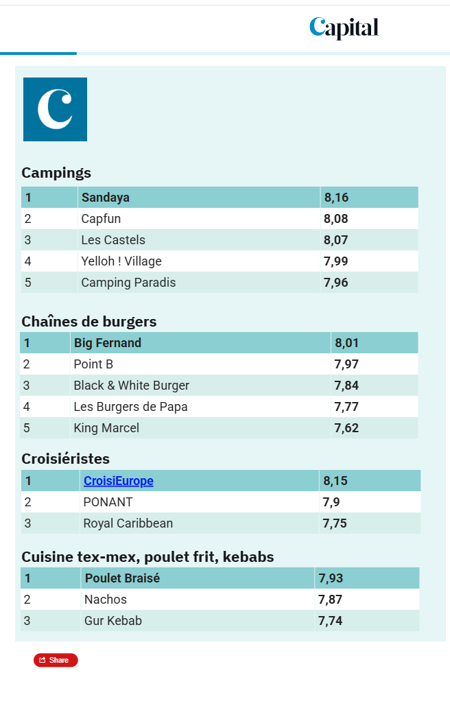 Le magazine Capital, en partenariat avec l’institut Statista, publie son classement 2026 des meilleures enseignes du tourisme et de la restauration, établi à partir de l’avis de plus de 15 000 consomm…